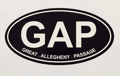 Designed to coordinate with the GAP oval t-shirt, this 3"x 6" black & white oval sticker is for indoor/outdoor use.